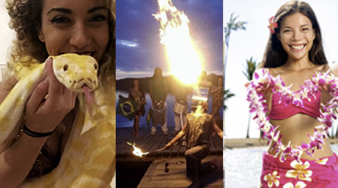 Bezetting: dans (2 mooie tropische danseressen), muziek (swingend duo) of tropische DJ naar keuze.